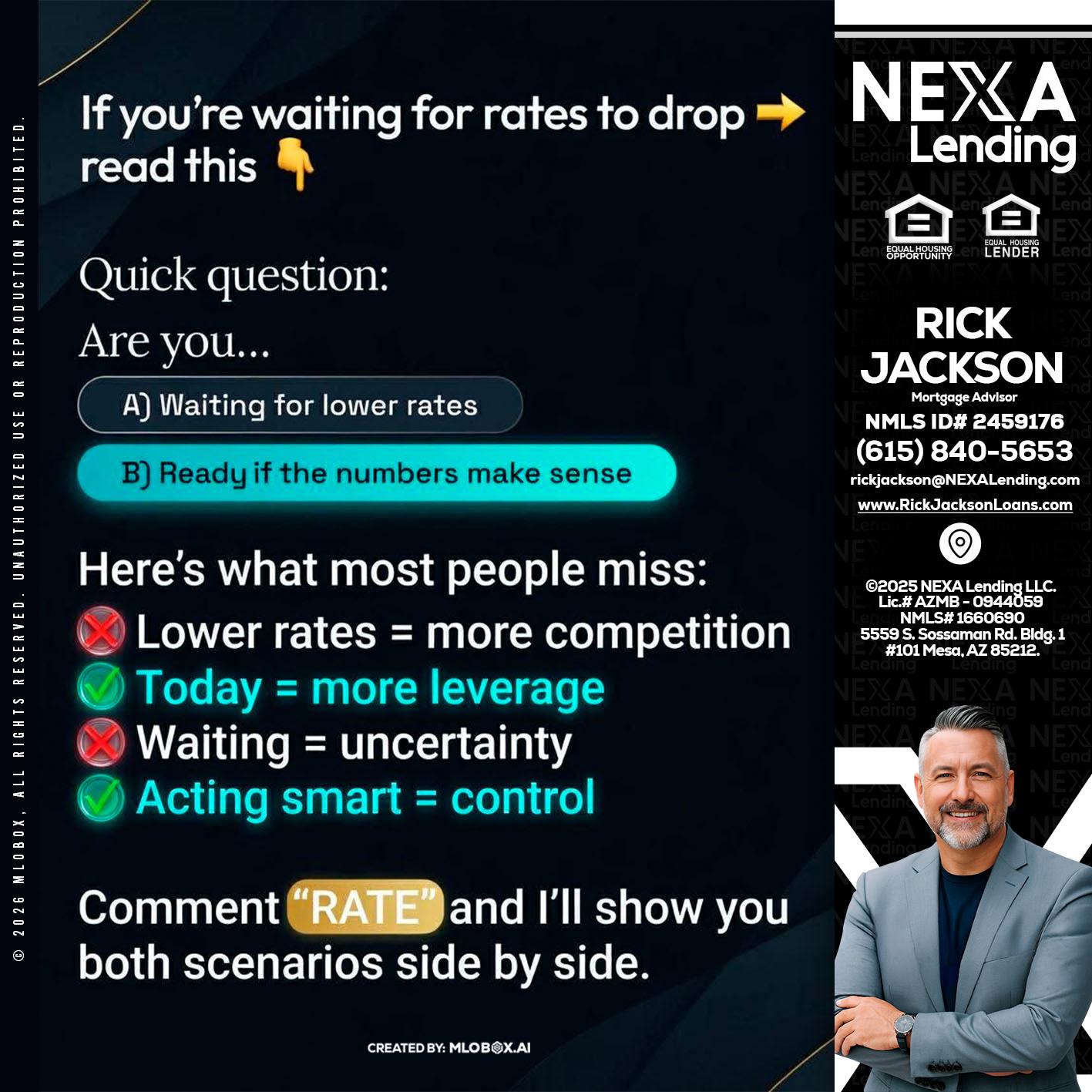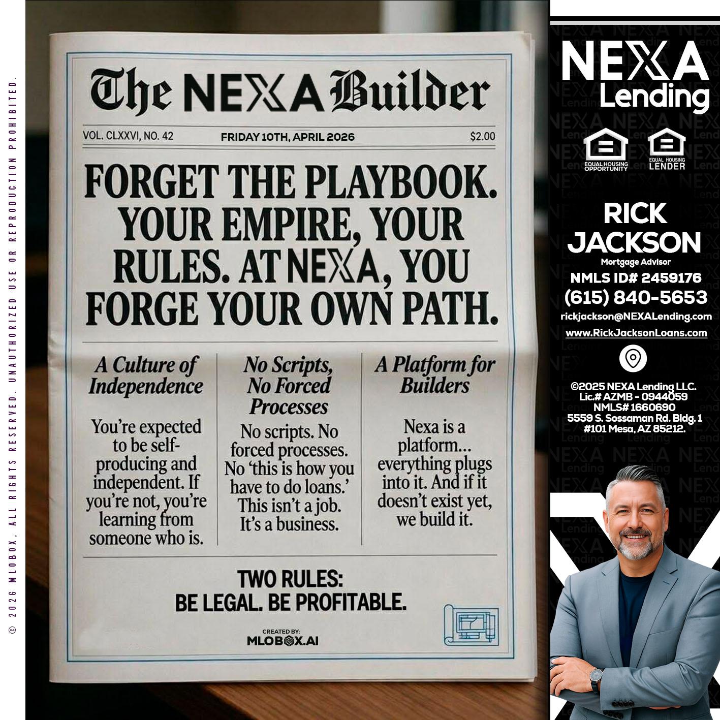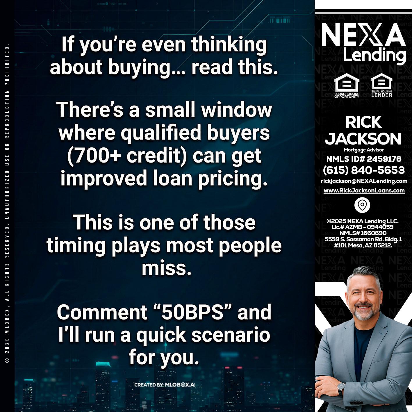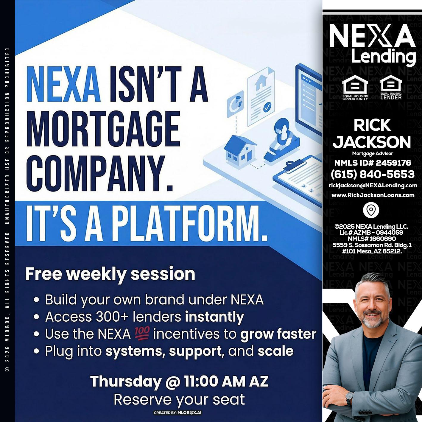 Hi, my name is Rick Jackson. I’m a Loan Officer with NEXA Lending LLC., offering personalized mortgage solutions, fast customized quotes, great rates and service with integrity.Let’s get you started with a faster, easier, cheaper mortgage 👇🏆 Home Purchase...