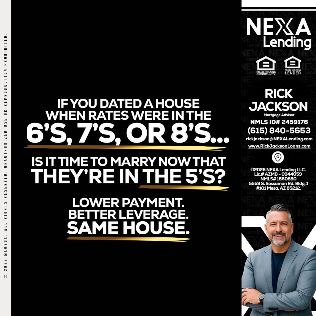 Hi, my name is Rick Jackson. I’m a Loan Officer with NEXA Lending LLC., offering personalized mortgage solutions, fast customized quotes, great rates and service with integrity.