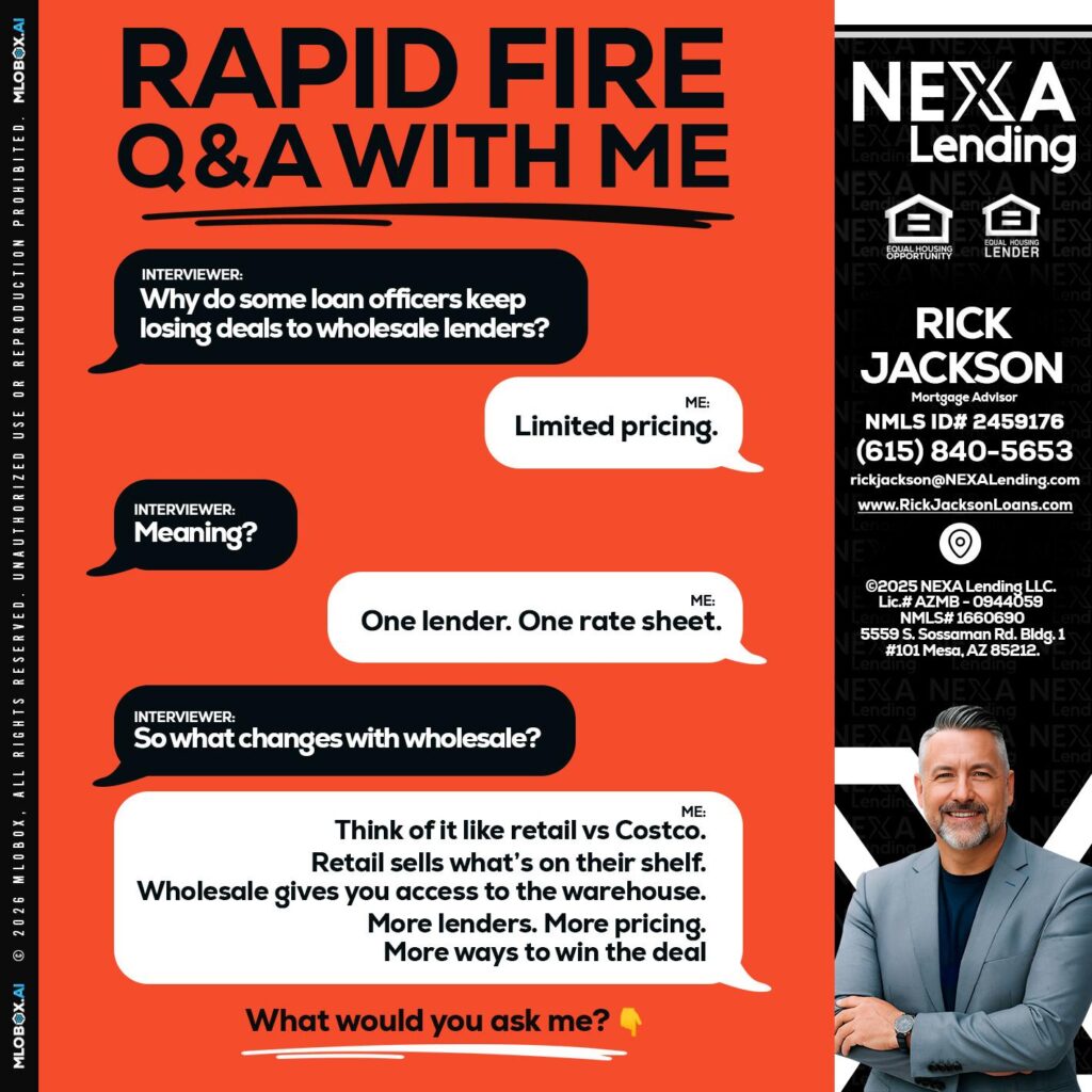 Hi, my name is Rick Jackson. I’m a Loan Officer with NEXA Lending LLC., offering personalized mortgage solutions, fast customized quotes, great rates and service with integrity.