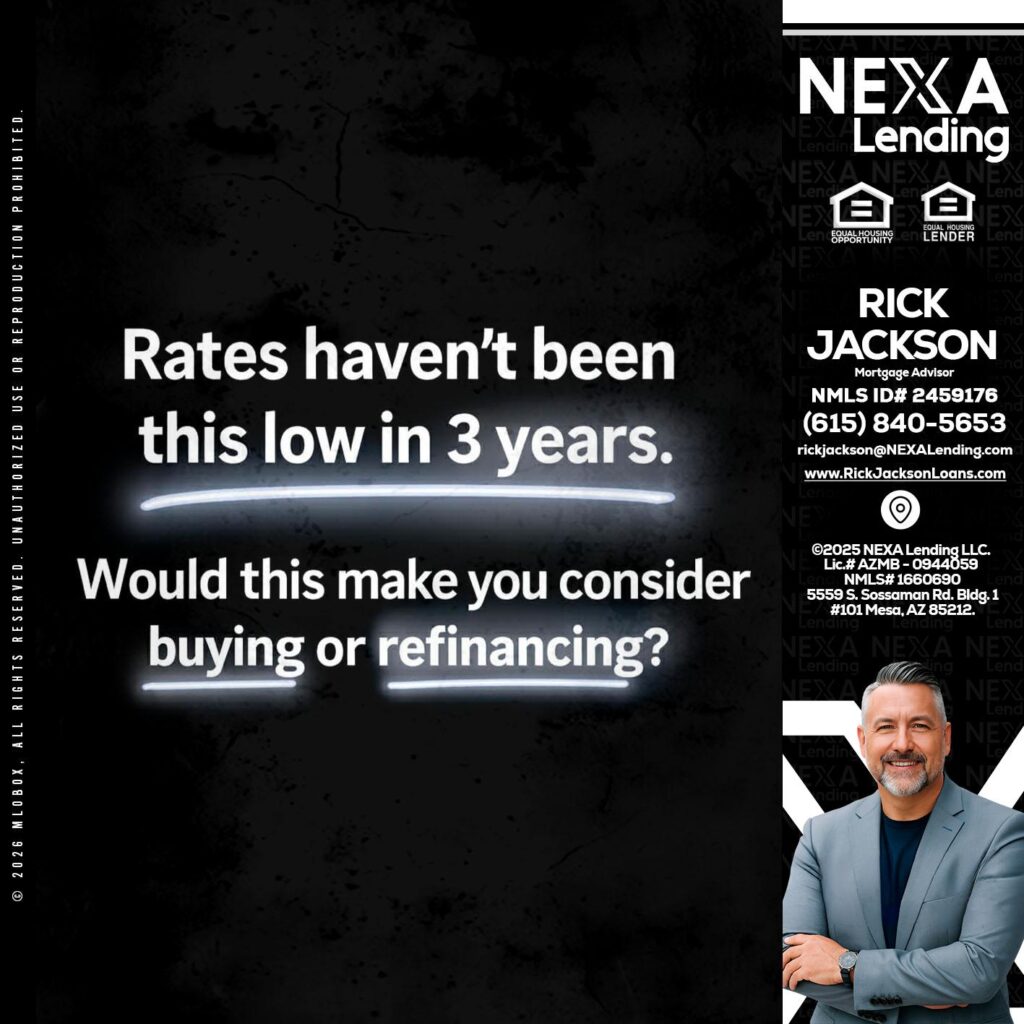 Hi, my name is Rick Jackson. I’m a Loan Officer with NEXA Lending LLC., offering personalized mortgage solutions, fast customized quotes, great rates and service with integrity.
