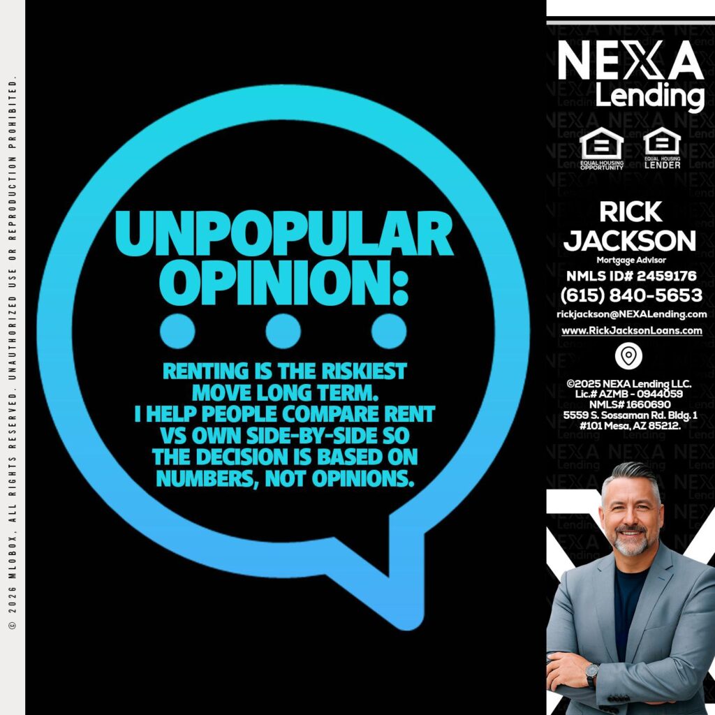Hi, my name is Rick Jackson. I’m a Loan Officer with NEXA Lending LLC., offering personalized mortgage solutions, fast customized quotes, great rates and service with integrity.